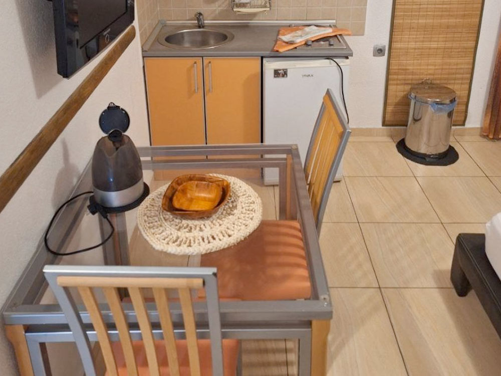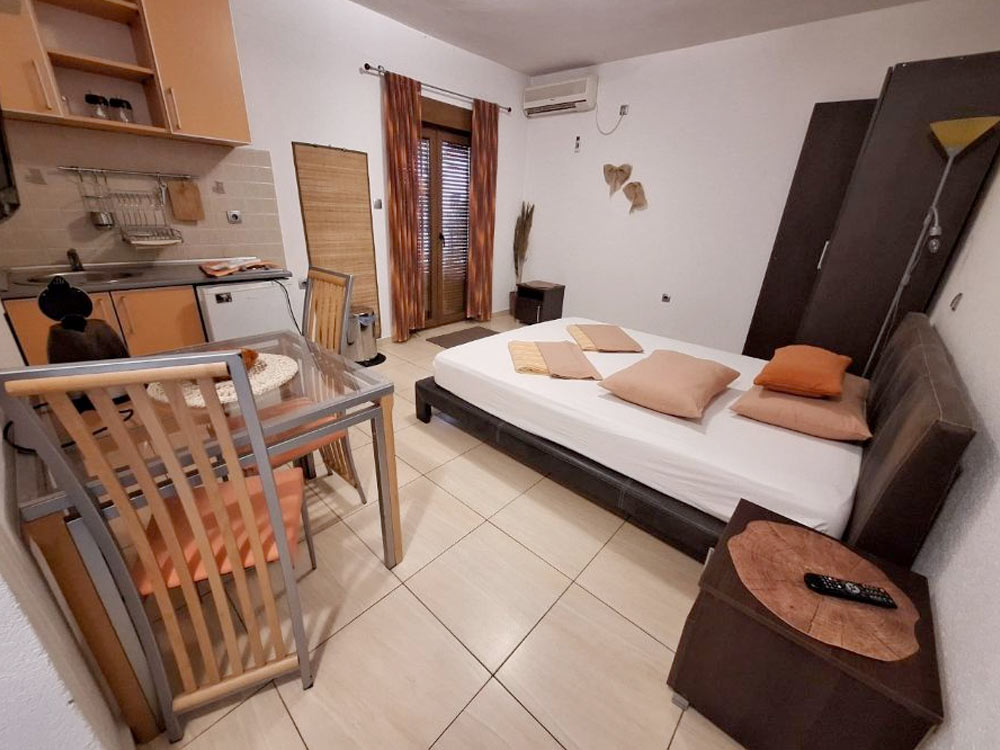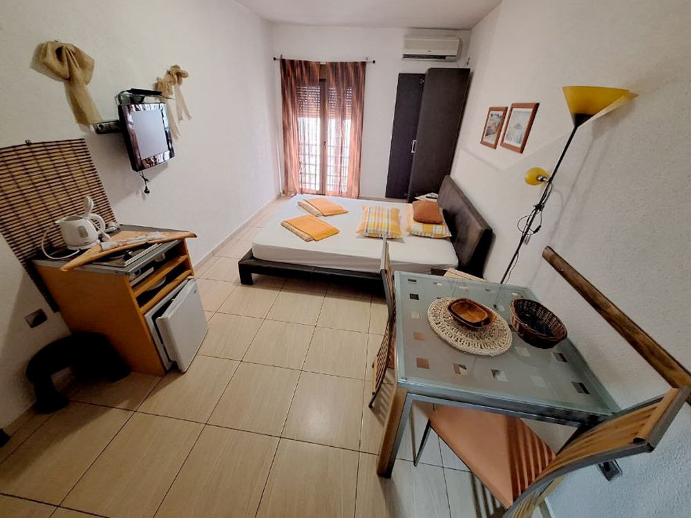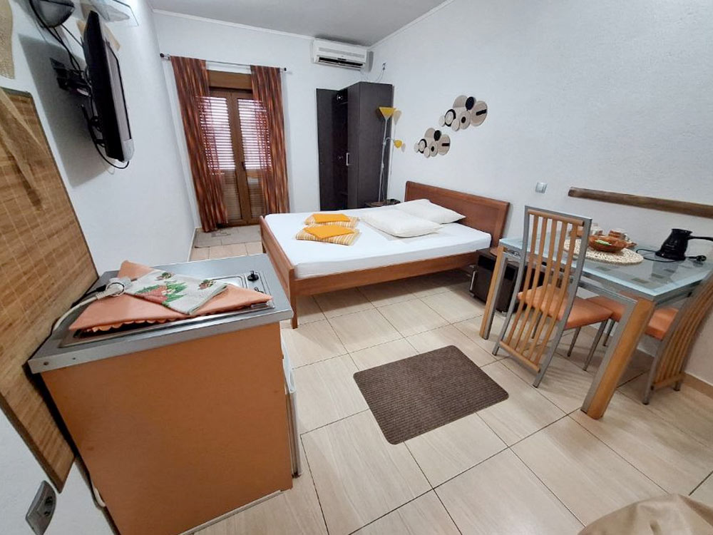 Studio 02 (№8,12,16): 20-23 m2, balcony 3 m2, double bed, kitchenette, private bathroom with shower.