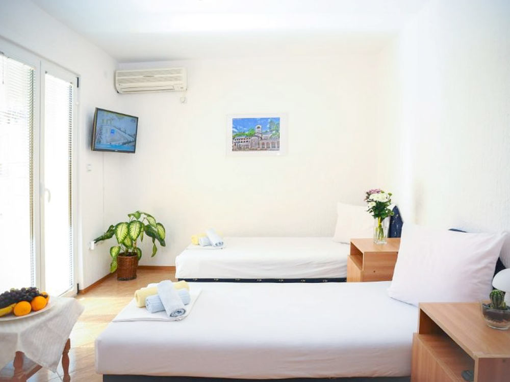 On the ground floor of the house there is a famous pizzeria “Fenix”, where guests can enjoy pizza or other local specialties. The distance to the Old Town is 2 km, to the bus station – 1 km; from Tivat Airport – 20 km, from Podgorica – 60 km.