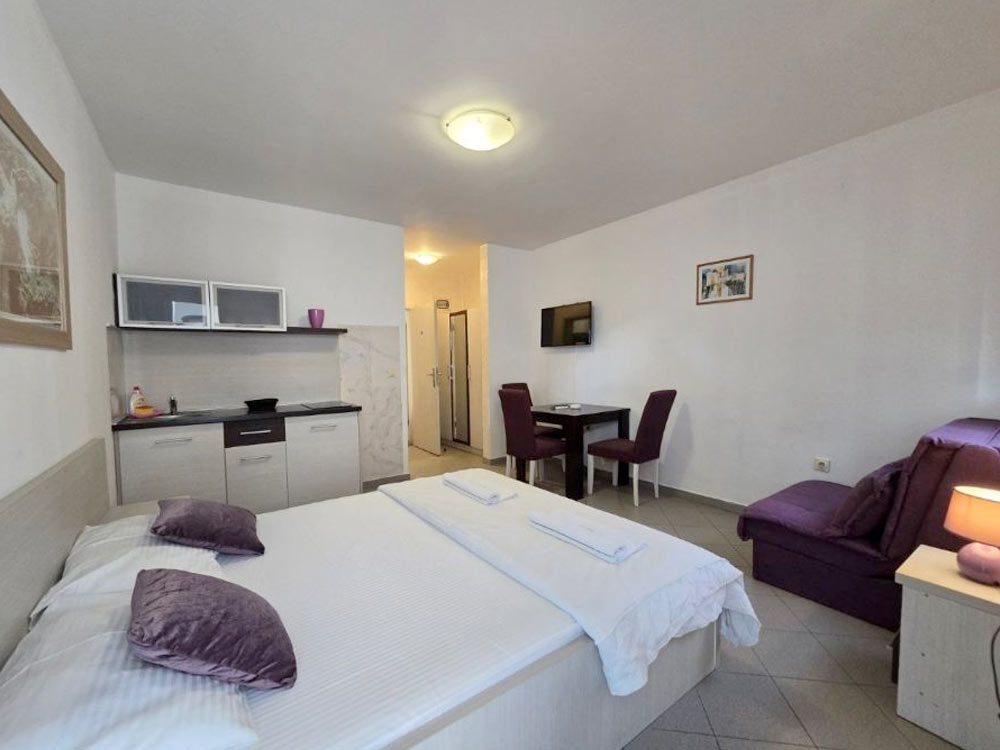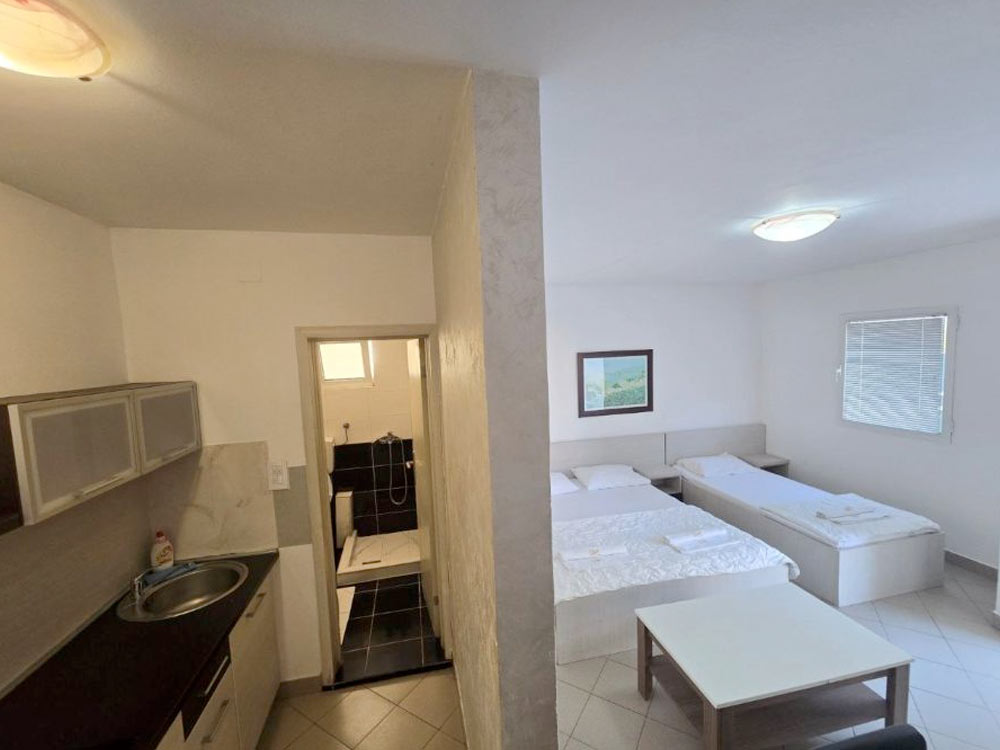 Studio 02+1 (№22,25,32,35): 25-28 m2 + terrace, double bed + folding chair, kitchenette, bathroom with shower. Maximum occupancy is 3 people.
