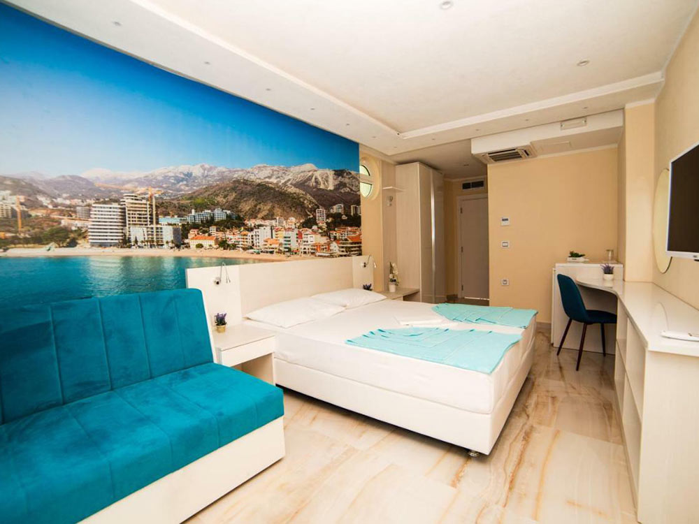 To the city beach – 100 m, to Kamenovo beach – 500 m, to the Old Town of Budva – 3.5 km, to Sveti Stefan – 5 km. Distance from Tivat airport – 24 km, from Podgorica – 62 km.