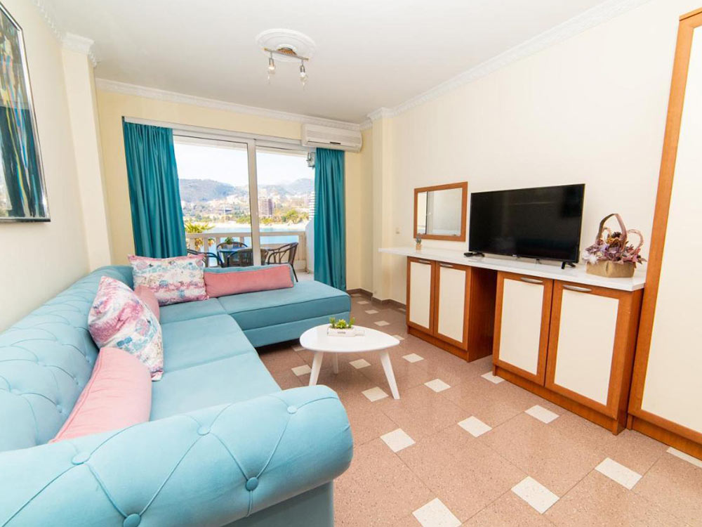 App 05 One Bedroom Sea View: 40 m2+ terrace overlooking the sea, living room with sofa bed and folding chair, kitchen (stovetop, kitchenware, electric kettle), bedroom with double bed, bathroom with shower, washing machine. Maximum occupancy – 5 people.