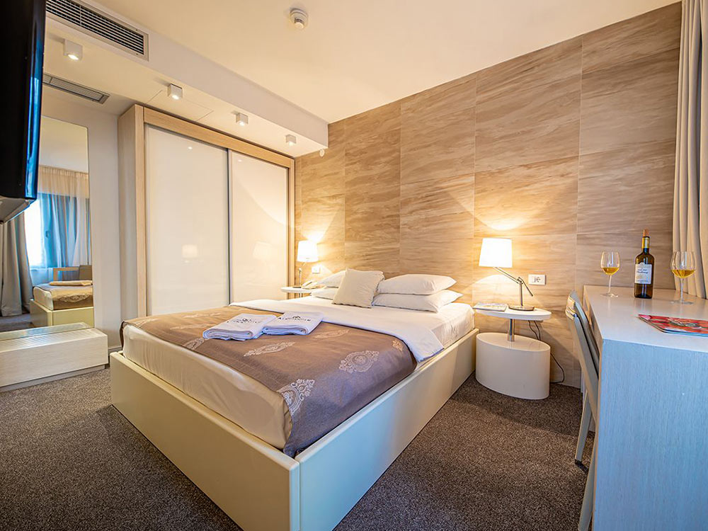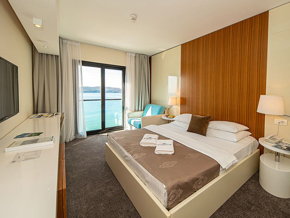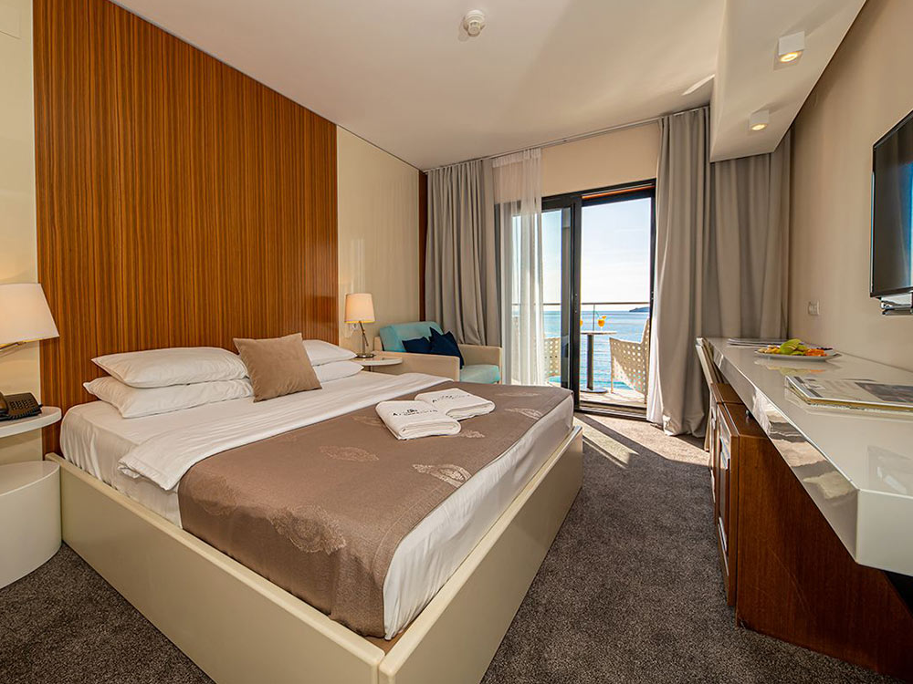 Double Room Sea View Terrace: 24 m2, balcony with sea view, large double bed+fold sofa, with private bathroom with shower.