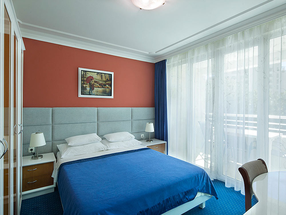 DBL std: 25 m2, with or without a balcony overlooking the mountains, double bed, bathroom with shower.