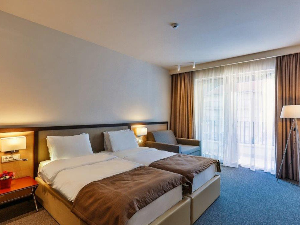 Standard: 26 m2, terrace, double bed or two separate beds, bathroom with shower. Maximum occupancy – 2 persons.
