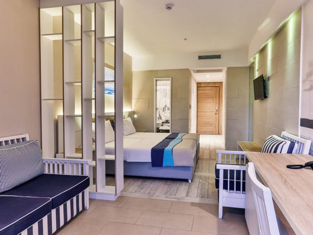 DBL SV: 25 m², terrace with sea view, double bed + sofa bed, bathroom with shower. Maximum occupancy – 3 people.