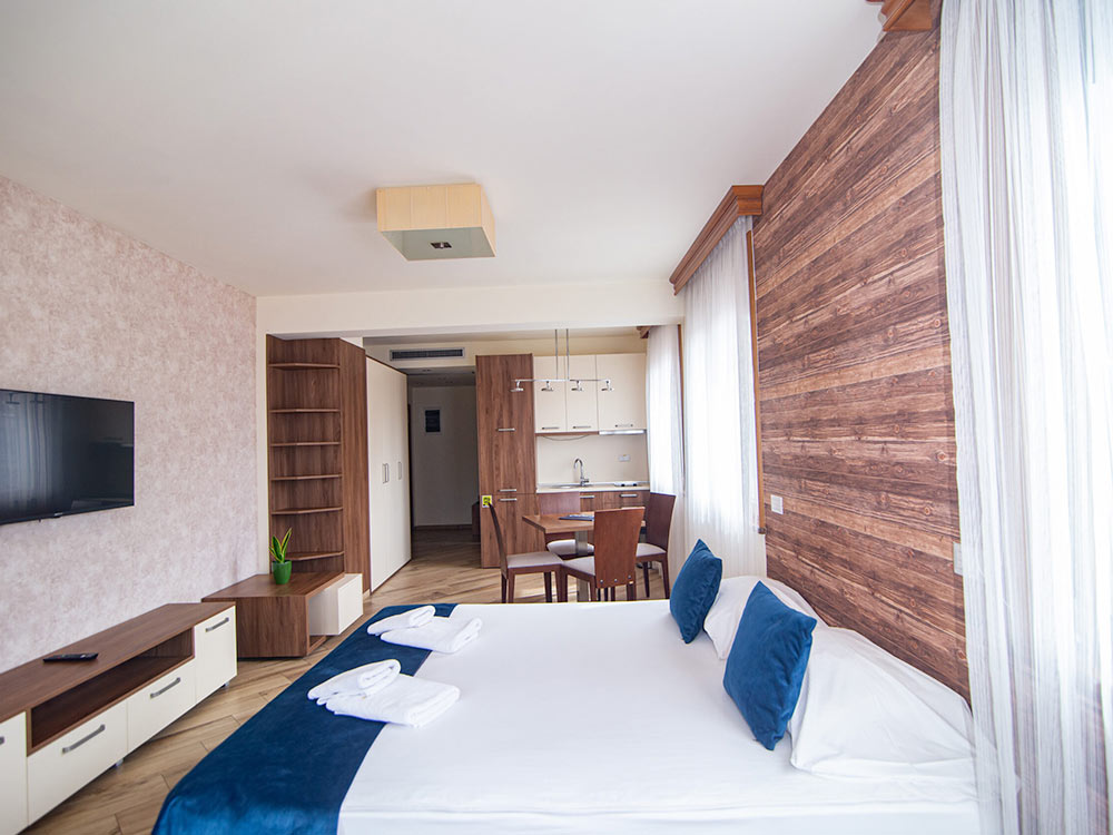 The hotel offers accommodation in 16 modern studios and apartments equipped to the highest standards. For guests there is a gastro bar with a large selection of dishes and drinks. An ideal place for a family active holiday.
