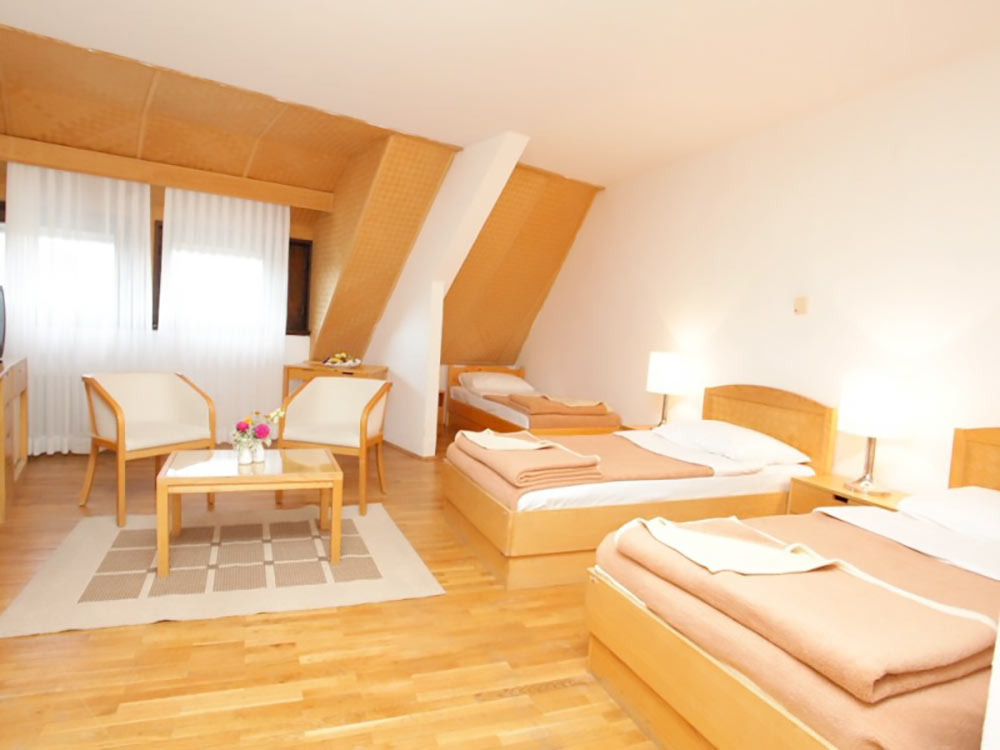 Family Room 03: 20 m2, double bed + single bed or three separate beds, free Wi-Fi, telephone, TV, private bathroom with shower, hairdryer.