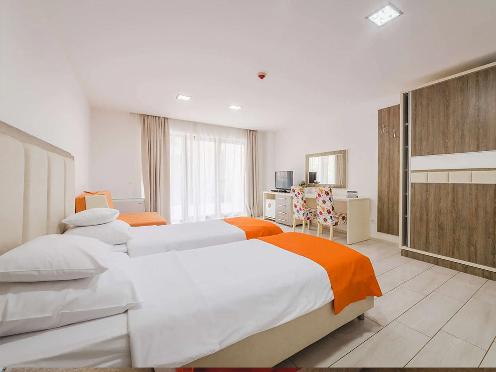 Standard: 25-39 m2, balcony, double bed + sofa, bathroom with shower. Maximum occupancy – 3 persons.