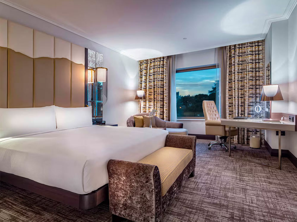 DBL Room: 33 m2, king-size bed Hilton Serenity, bathroom with separate bathtub and shower.