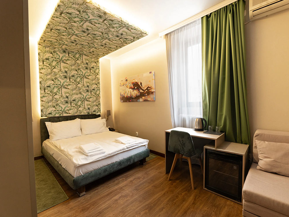 The excellent location of the hotel on a quiet street in the central pedestrian zone directly opposite the Dunavsky park makes the stay here comfortable and cozy. It offers accommodation with breakfast in spacious rooms and free Wi-Fi.