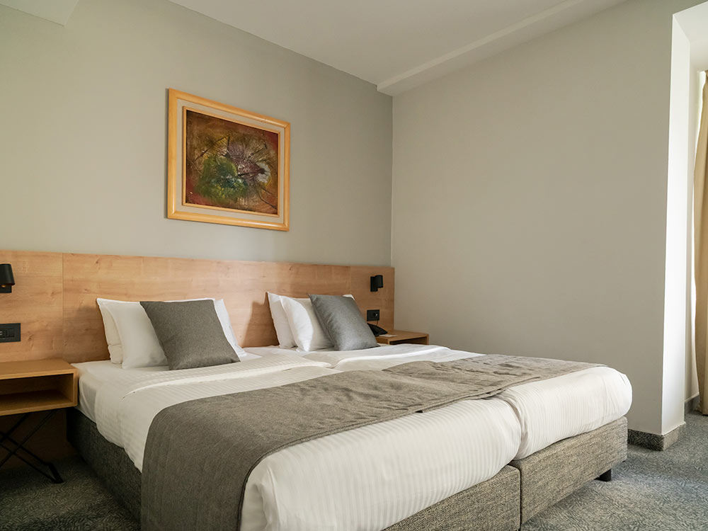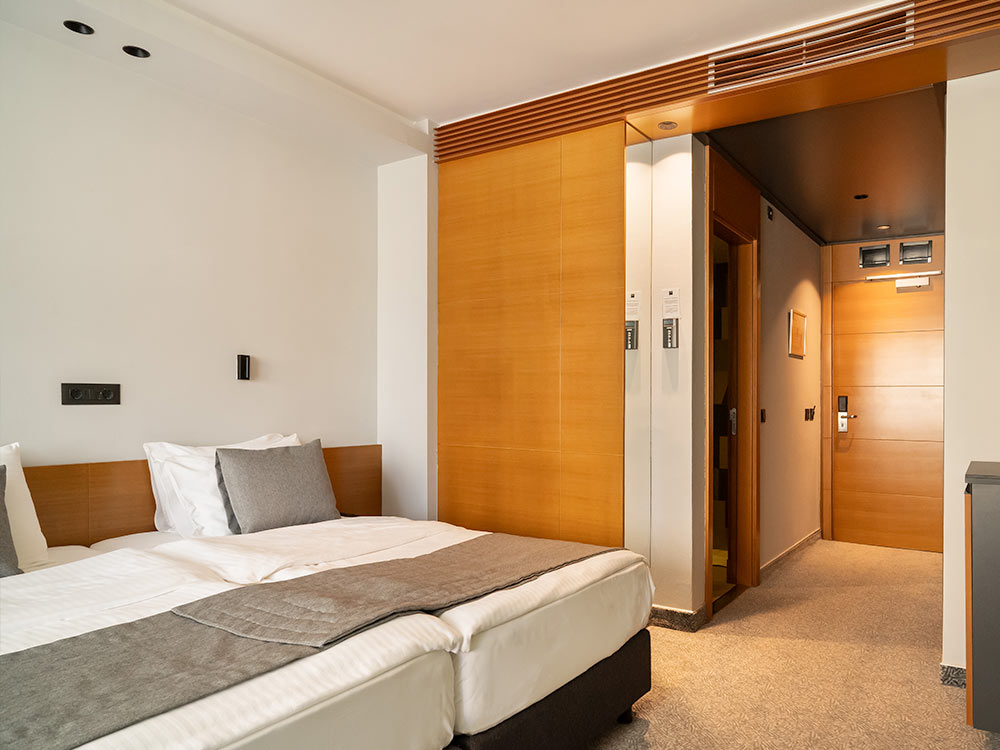 Superior Room: 30 m2, double bed or two single beds and one extra bed, flat-screen TV, cable channels, minibar, telephone, safe, free Wi-Fi, air conditioning, bathroom with shower, hairdryer. Maximum occupancy – 3 people.