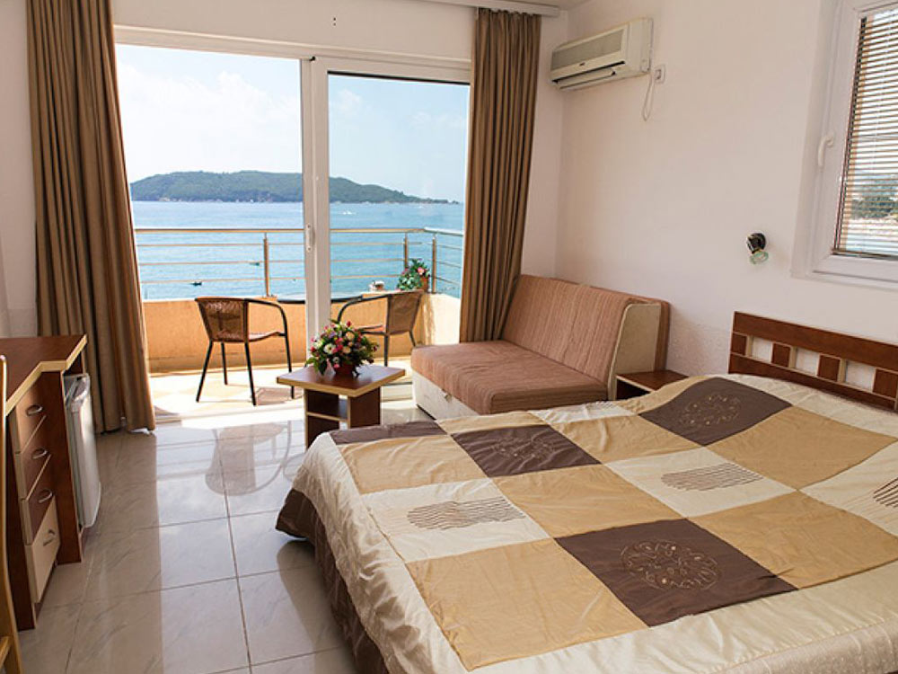 DBL With Extra Bed: 18 m2, balcony with side sea or mountain view, double bed + folding chair, bathroom with shower. Maximum occupancy – 3 persons.