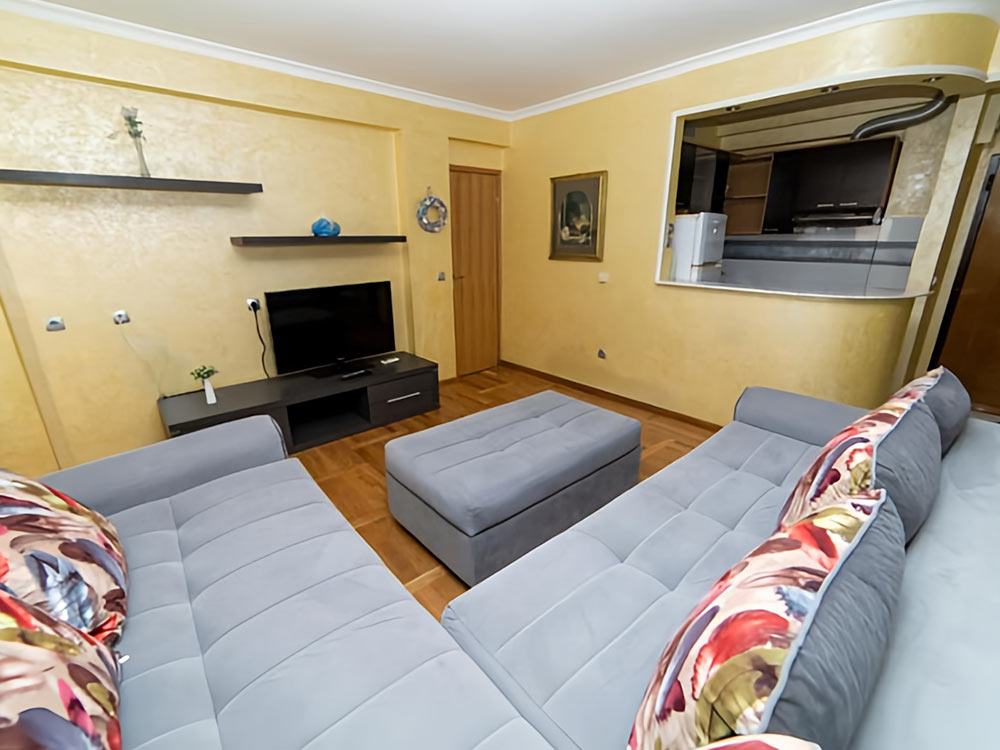 APP 05 One bedroom: 35 m2, balcony, bedroom with double bed, living room with sofa bed + chair, kitchenette, iron, bathroom with shower. Maximum occupancy – 5 people.