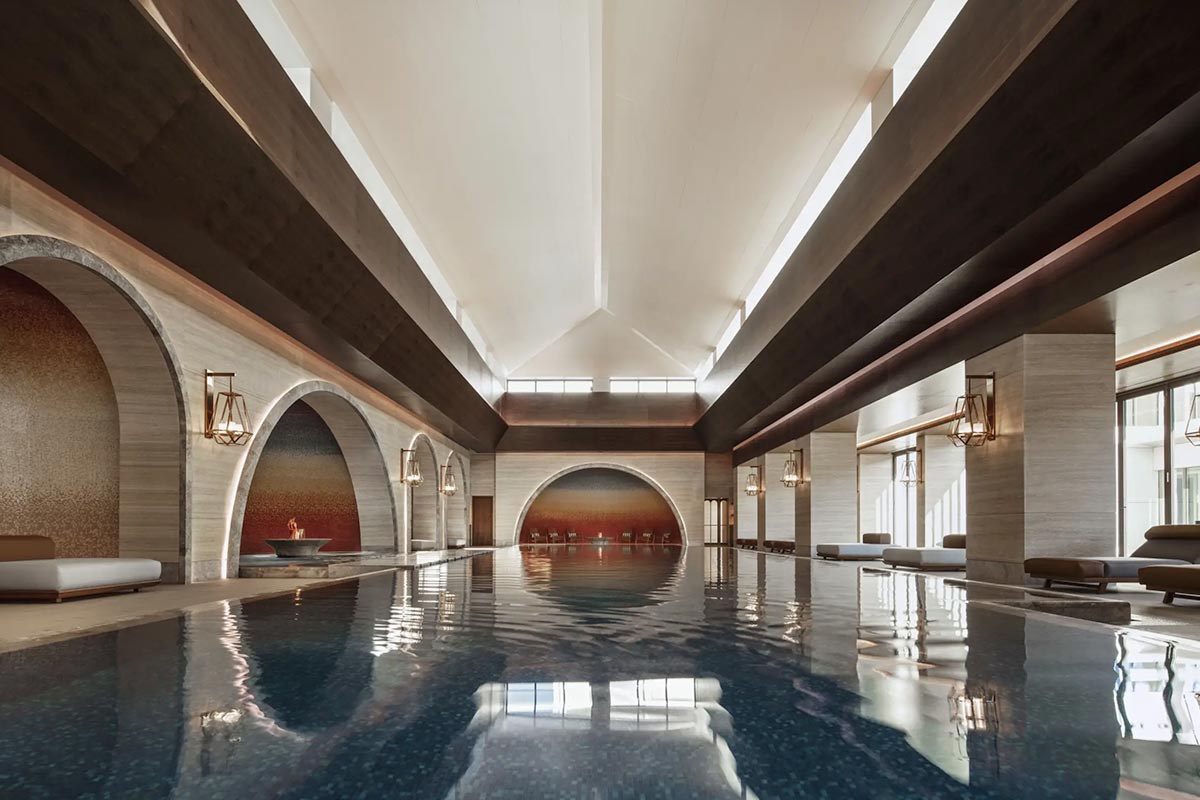 fusion restaurant with Asian cuisine and a modern club by the pool.