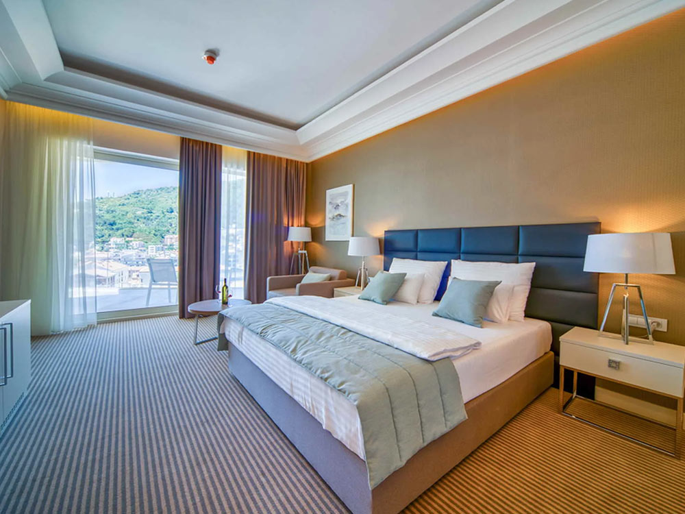 The new building of the Palas Lux Hotel is located next to the main building of the Palas Hotel, on the promenade of Petrovac. The hotel is located on the first line from the sea, with direct access to the city beach, restaurants, cafes, shops and other attractions of the resort town.