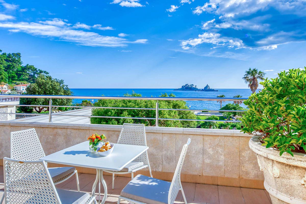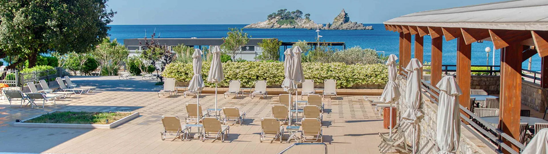 Hotel Palas situated directly at the beach in Petrovac, surrounded by olive and orange trees. Hotel Palas is a first-line to the sea property with a direct connection to the promenade that features various attractions.