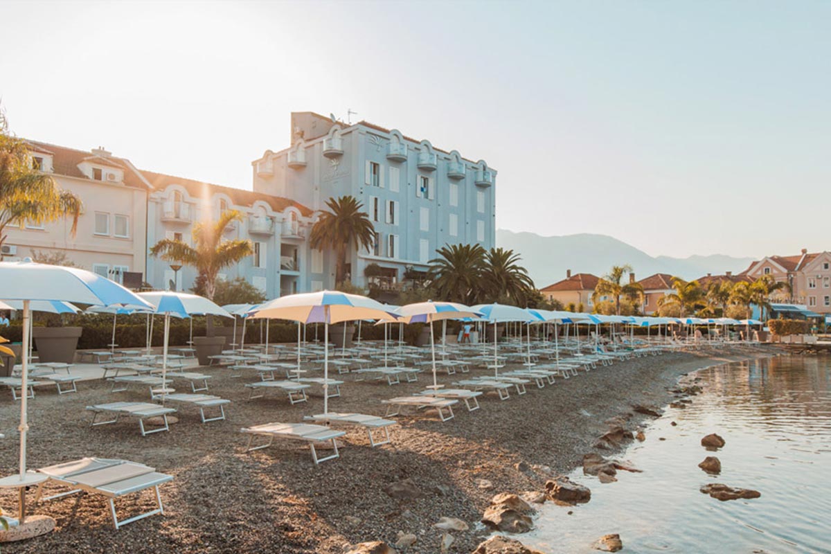 The elegant Hotel Palma is located in the center of Tivat, on the seafront, overlooking the Bay of Kotor. Within walking distance from the hotel: supermarkets, cafes and restaurants, yacht marina Porto-Montenegro. Distance from Tivat airport – 3.6 km, from Podgorica airport – 47 km, to Kotor – 8 km, to the island of Lustica – 10 km.