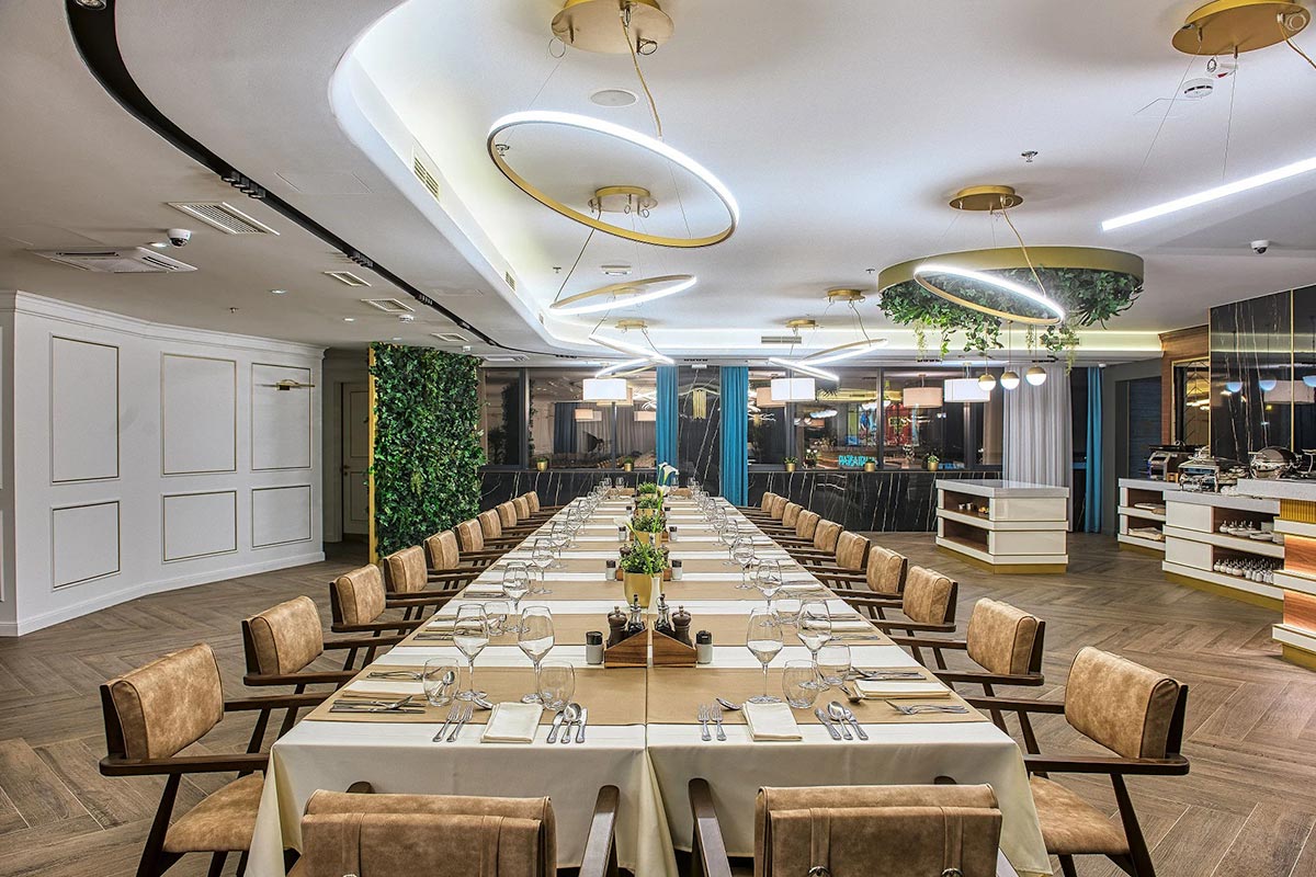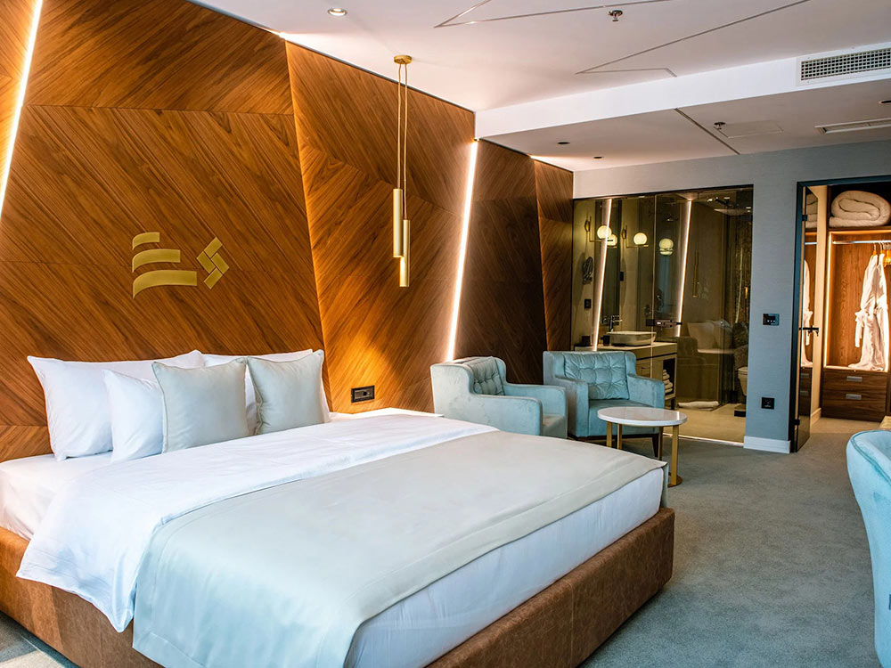 Modern design, spacious rooms and high level of service. The hotel is suitable for family travel, business trips and romantic walks around the city. The hotel has a democratic restaurant Kalem and a well-known gourmet restaurant Zak. An excellent breakfast is served to hotel guests.