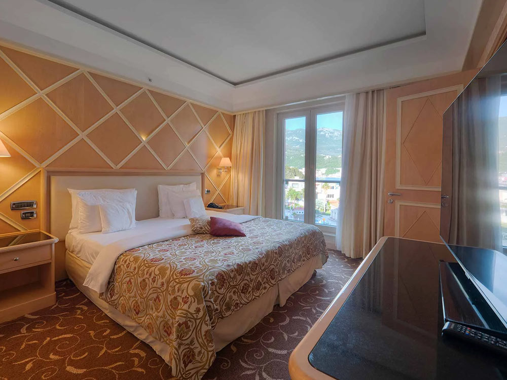 Premium Sea View: 42 m2, balcony with the best view of the sea and Becici bay, extra-large double bed or two separate beds, sofa bed (1,90 m х 1 m), private bathroom with bathtub and shower. The maximum occupancy – 3 people.