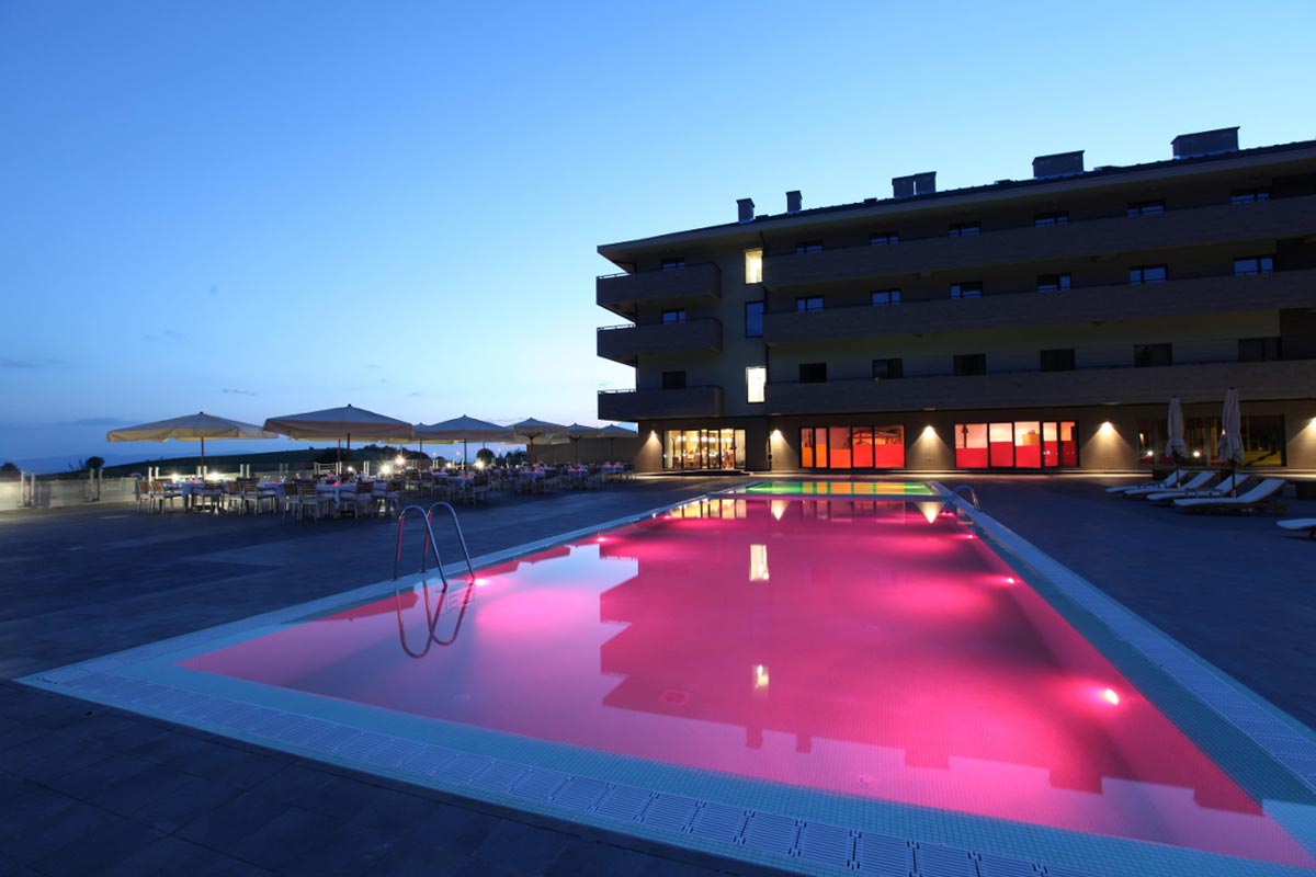 - SPA and wellness center (1000 sq.m.) with a covered pool, a sauna and a Turkish bath, a jacuzzi, a gym and an outdoor pool with sunbeds and umbrellas (in the summer), Falky-Kinder SPA and 15-meter water slide;