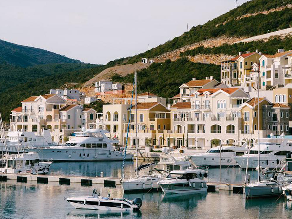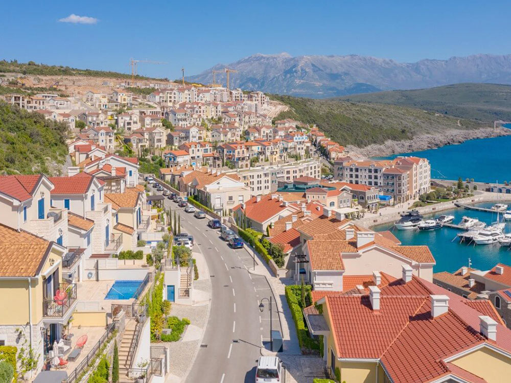 The Luštica Peninsula separates the Bay of Kotor and the Adriatic Sea, and the peninsula itself is divided by the municipalities of Tivat and Herzegovina Novi.