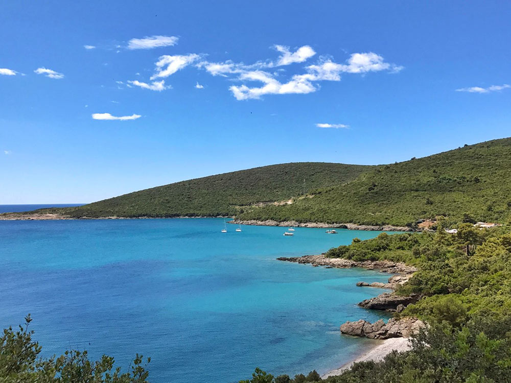 Luštica is known for its beaches, the most popular of which are the Plavi Horizont and Žanjice. The sandy beach of Plaví Gorizont is located in the small bay of Pržno Bay near the village of Radovići. The beach is surrounded by a pine forest, its length is slightly more than 300 m, it is fully equipped and has a gentle entrance, which makes it attractive for a family holiday with children. The Galley Beach of Zhánice is located further along the coast in a large bay. Here, turquoise waters are combined with olive groves that surround the entire beach. From here in the summer, there are boats to Herceg Novi.