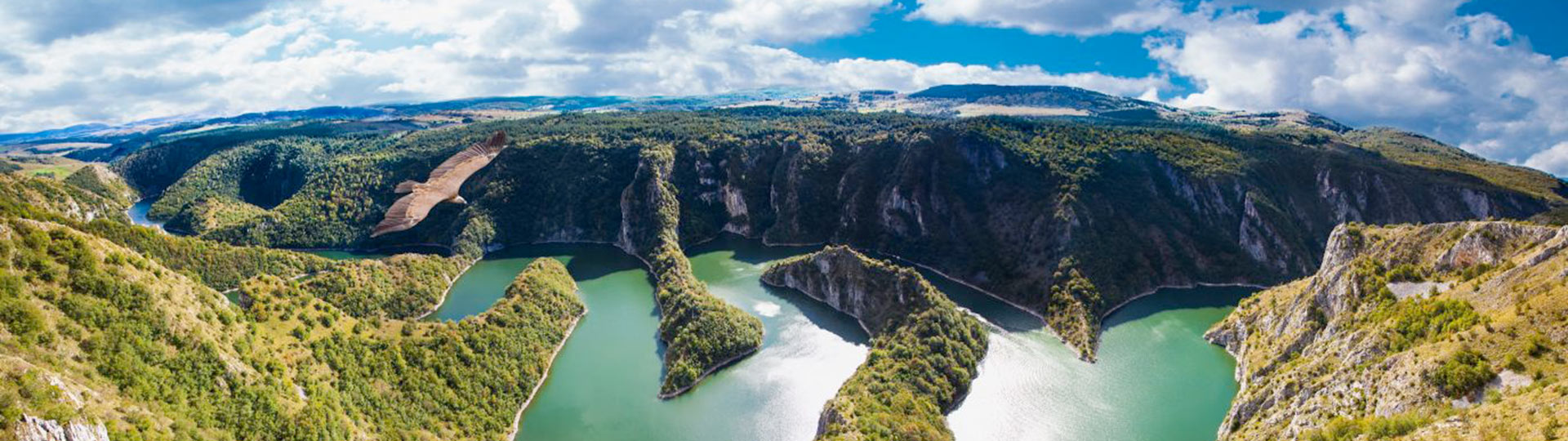 For 119 km, the Uvac River cuts a deep and winding valley through the dramatic karst landscape of mountain peaks, towering slopes and vast caves. Among such attractive places, the Meredrads stand out, as a particularly bright part of the picturesque canyon Uvac. The Meandras are a series of loop-like bends that the river has carved out of its limestone layer for thousands of years. In this area of the canyon walls can fly 100 meters above the surface of the river. The result is a natural wonder of nature, which impresses all guests of Serbia without exception. The Uvatz River Meandras are part of the Uwatz Reserve, a protected area first created in 1971. It currently covers a total of 7543 hectares.