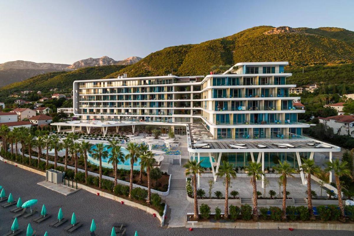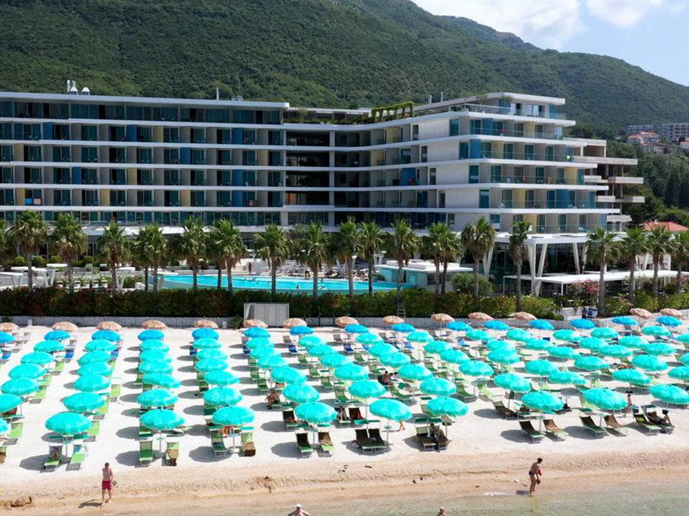 Частный пляж — насыпной песок и мелкая галька. Шезлонги и пляжные зонтики — бесплатно по системе «всё включено». Пляжные полотенца предоставляются за дополнительную плату. Расположен в Которском заливе, достаточно просторный для всех гостей отеля, а также имеет собственный причал для небольших яхт и лодок.