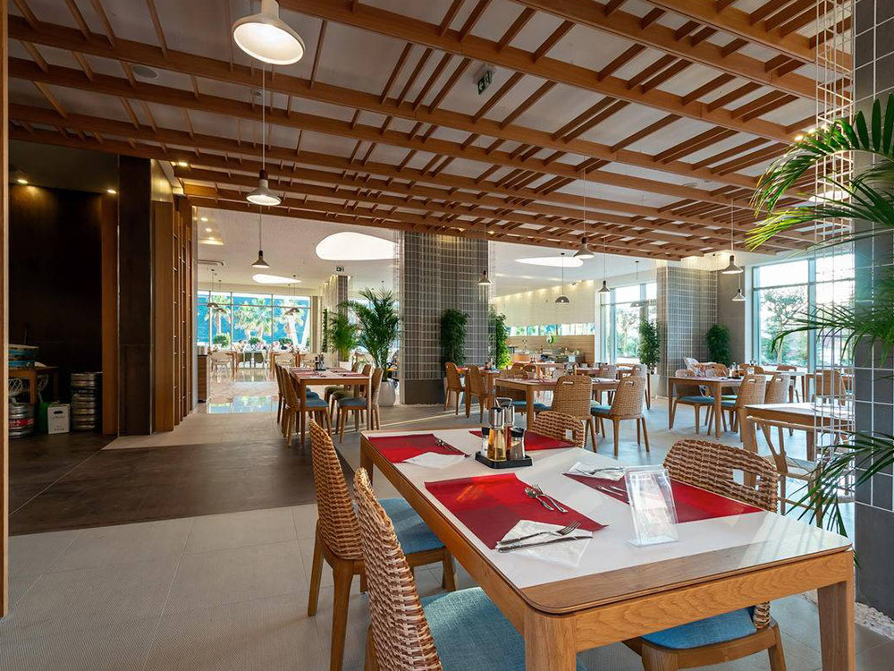 * В главном ресторане Mimoza сервируют завтрак, обед и ужин — «шведский стол» с разнообразием блюд интернациональной и местной кухни.