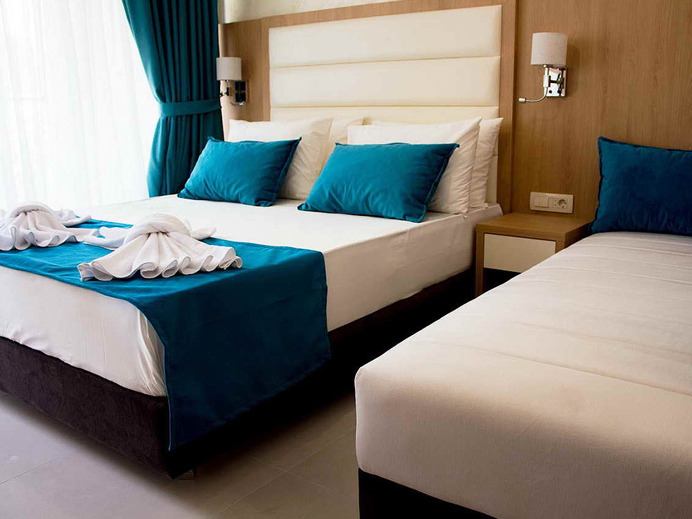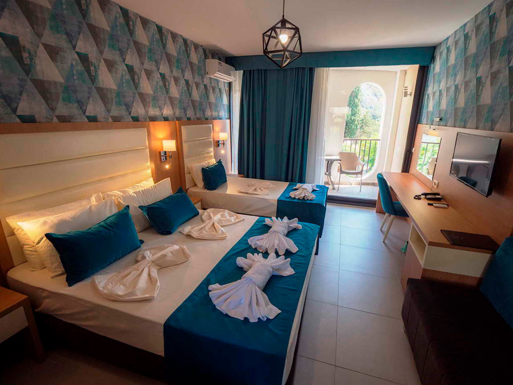 Standard Room inside villas: 24-26 м2, балкон с видом на территорию, французская кровать + односпальная кровать, ванная комната с душем. Максимальное размещение — 3 человека.