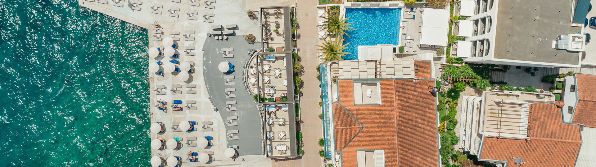 Эта набережная — единственное, что разделяет отель и его пляж. Расстояние до Старого города — 1,4 км, до пляжа — 30 м, от аэропорта Тивата — 23 км.