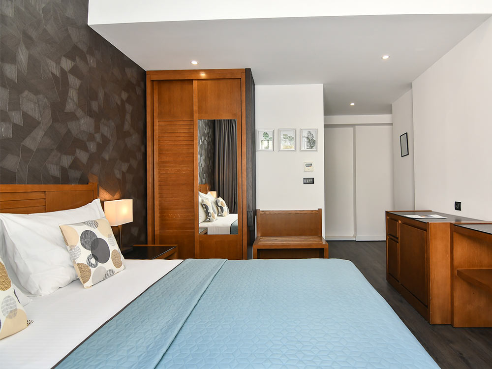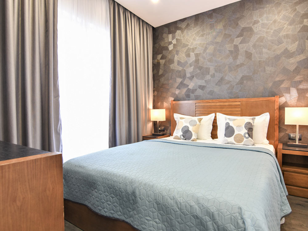 App 02+2: 40 м2, балкон с видом или без вида на море, спальня с французской кроватью, гостиная с раскладным диваном, мини-кухня, ванная комната с душем. Максимально допустимое размещение – 2 взрослых + 2 ребенка.