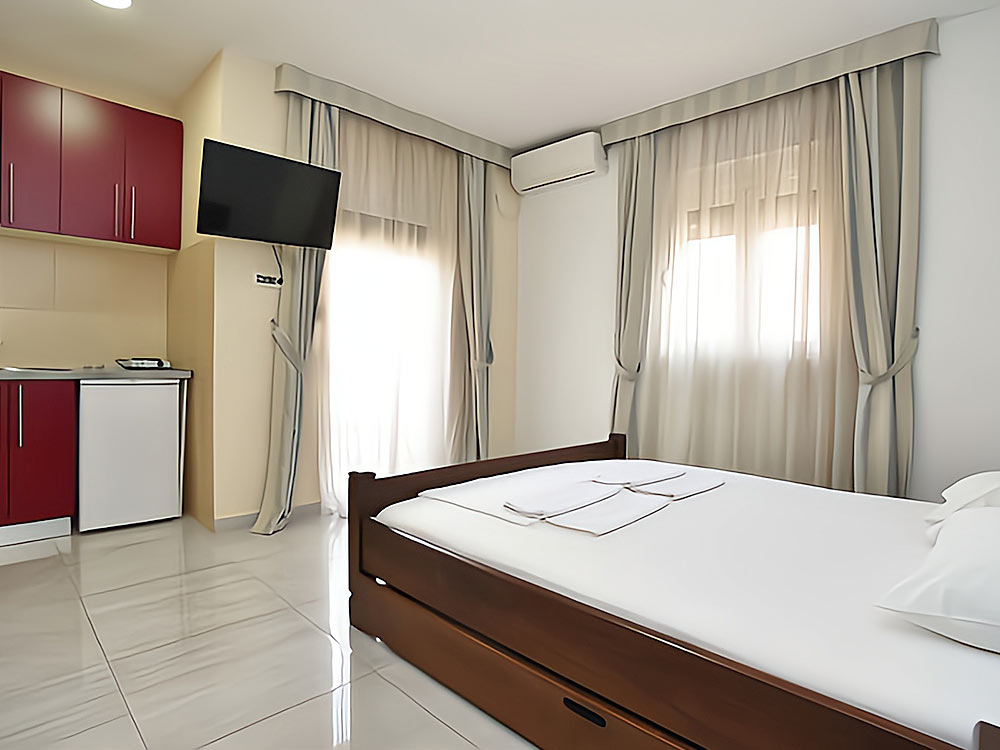Studio 02 (№ 201, 204, 402, 404, 502, 504, 602, 604): 15 м2, балкон, французская кровать или две раздельные кровати, мини-кухня, ванная комната. Максимальное размещение — 2 человека.