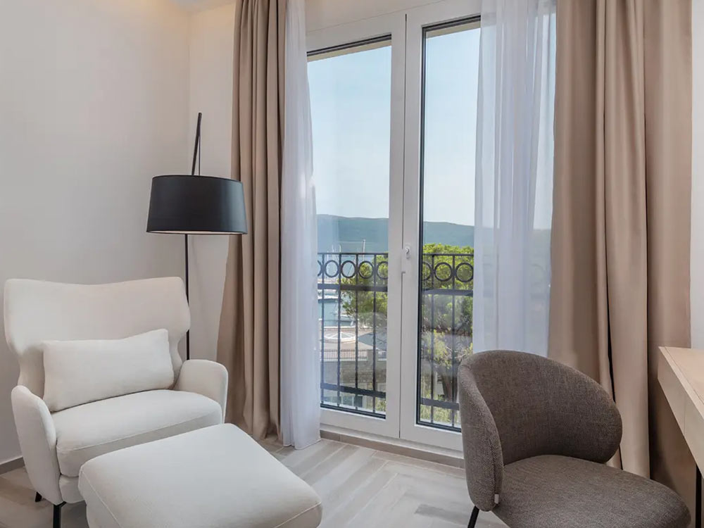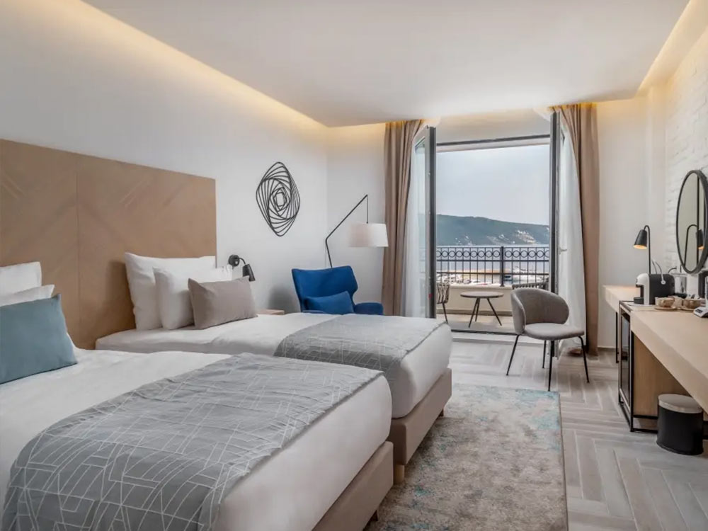 Superior Sea View with balcony: 28-30 м2, балкон с видом на море, большая двуспальная кровать (200 x 200 cm) или две раздельные кровати (100 x 200 cm), ванная комната с душем. Максимальное размещение — 2 человека.