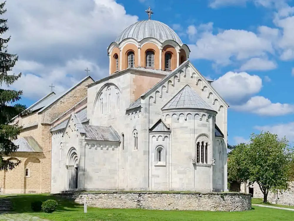 Built in 1208 as a memorial monastery for King Stephen the First Crowned. After receiving autocephaly in 1219, the residence of an independent Serbian archdiocese was located here. In the Middle Ages, the monastery played an important role in religious, political and cultural life. In it, until the 13th century, Serbian kings received the royal crown. The central church is dedicated to the Ascension (St. Savior). The facades are plastered and painted in red, like the churches on Mount Athos.