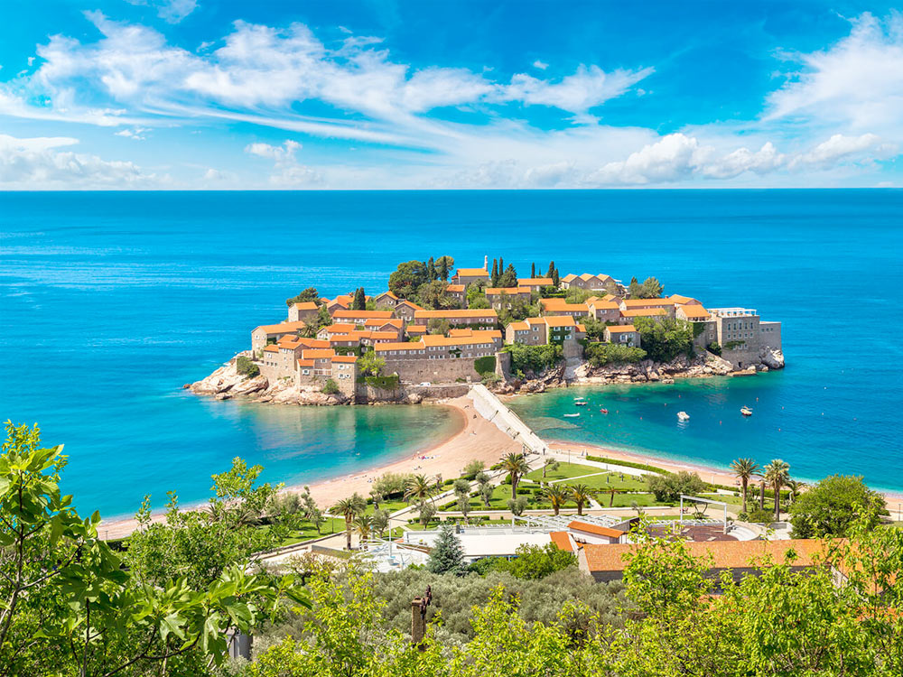 Journey through the romantic Adriatic road to the south of Montenegro, where it is possible to plunge into the medieval atmosphere and the eastern flavour, with a stop for a photo at the Sveti Stefan Hotel Island.